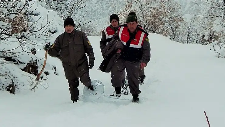 Bunun üzerine arazi araçlarıyla yola çıkan ekipler, yaklaşık 2 saatte bölgeye ulaştı. Ekipler, 15 kilometreyi araçlarla giderken, yaklaşık 700 metreyi ise "hedik" adını verilen kar ayakkabısıyla yürüdü.