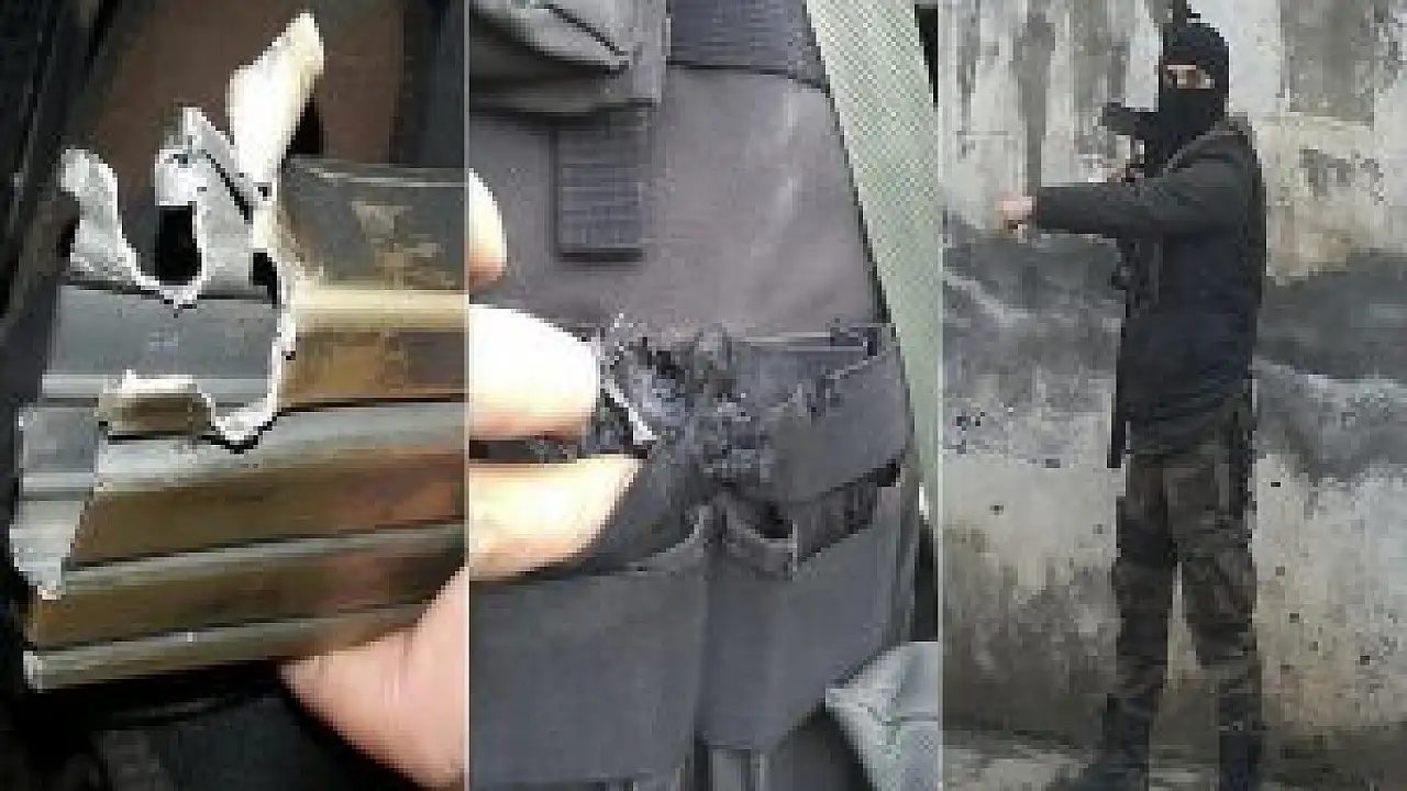 Cudi Mahallesi'nde terör örgütü PKK'ya yönelik operasyona katılan özel harekat polisi İbrahim A, bir arkadaşını şehit verdiği çatışmada merminin yeleğindeki yedek şarjöre isabet etmesi sonucu yara almadan kurtuldu. Teröristlerin bir başka atışı ise boynundaki silahın askısını delip geçti.