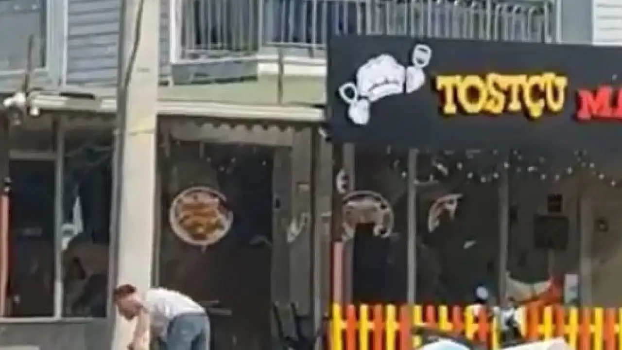 Antalya'da alkollü olduğu iddia edilen bir kişi, yediği tostun parasını ödemeyip dükkana taş ve sopalarla zarar verdi. Öfkesi dinmeyen adam, ancak sopayla dövülerek durdurulabildi.