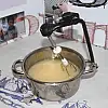 Oktay, "Biz bu projeyi yapmaya karar verdikten sonra orta boy bir tencere edindik. Sonra aldığımız bir motora ikinci el blender telini taktık. Kalem pil, motor ve teli yapıştırıcı bantla sabitledik." bilgisini aktardı. Düzeneği istedikleri gibi çıkartıp takabildiklerini söyleyen Oktay, "Karıştırıcıyı tencerenin sapına monte ediyoruz. İstersek çıkartıp daha küçük ya da büyük bir tencereye takabiliyoruz. Anahtarı açtığımızda tencerenin sapına bağlı olan karıştırıcı yemeği karıştırmaya başlıyor." dedi.