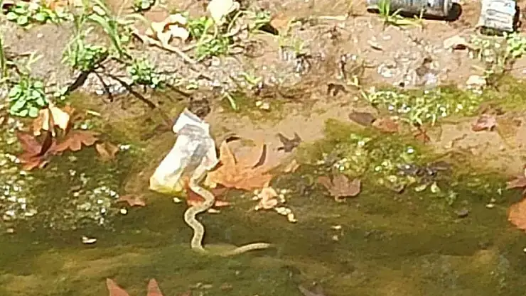 Adıyaman'ın Gölbaşı ilçe merkezinde bulunan yemişen deresinde görülen yılan paniğe neden oldu.