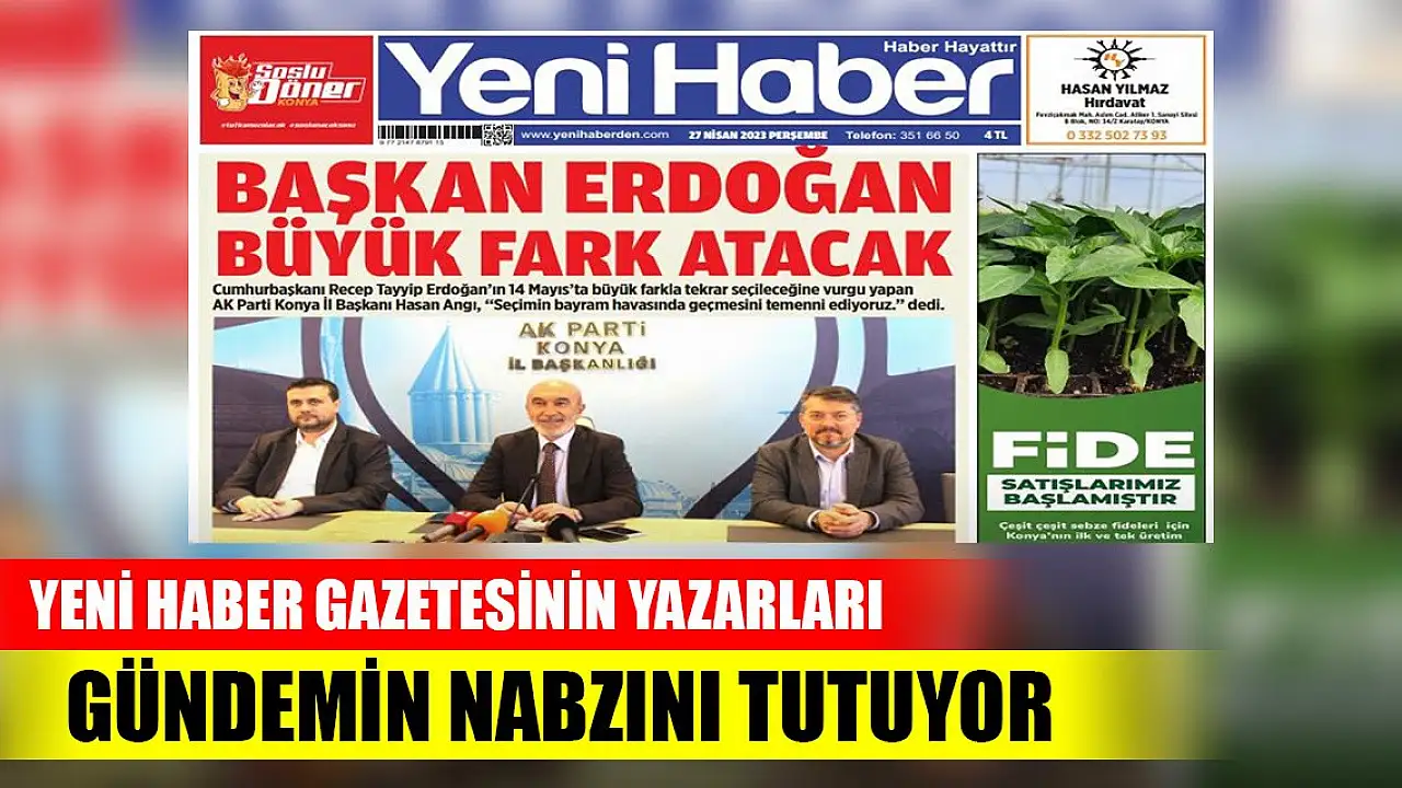 Yeni Haber Gazetesinin yazarları gündemin nabzını tutuyor. Bugün Konya Yeni Haber Gazetesinde ve İnternet Sitesinde 9 yazar köşe yazdı.