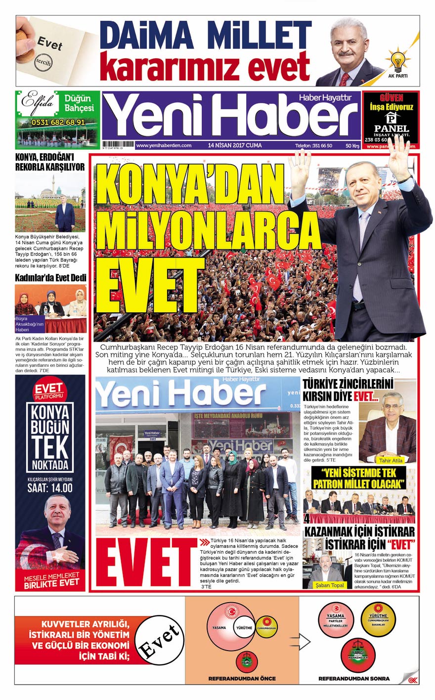 16 Nisan Halk oylaması öncesi Yeni Haber ailesi kararlarının evet olduğunu ilan etti.