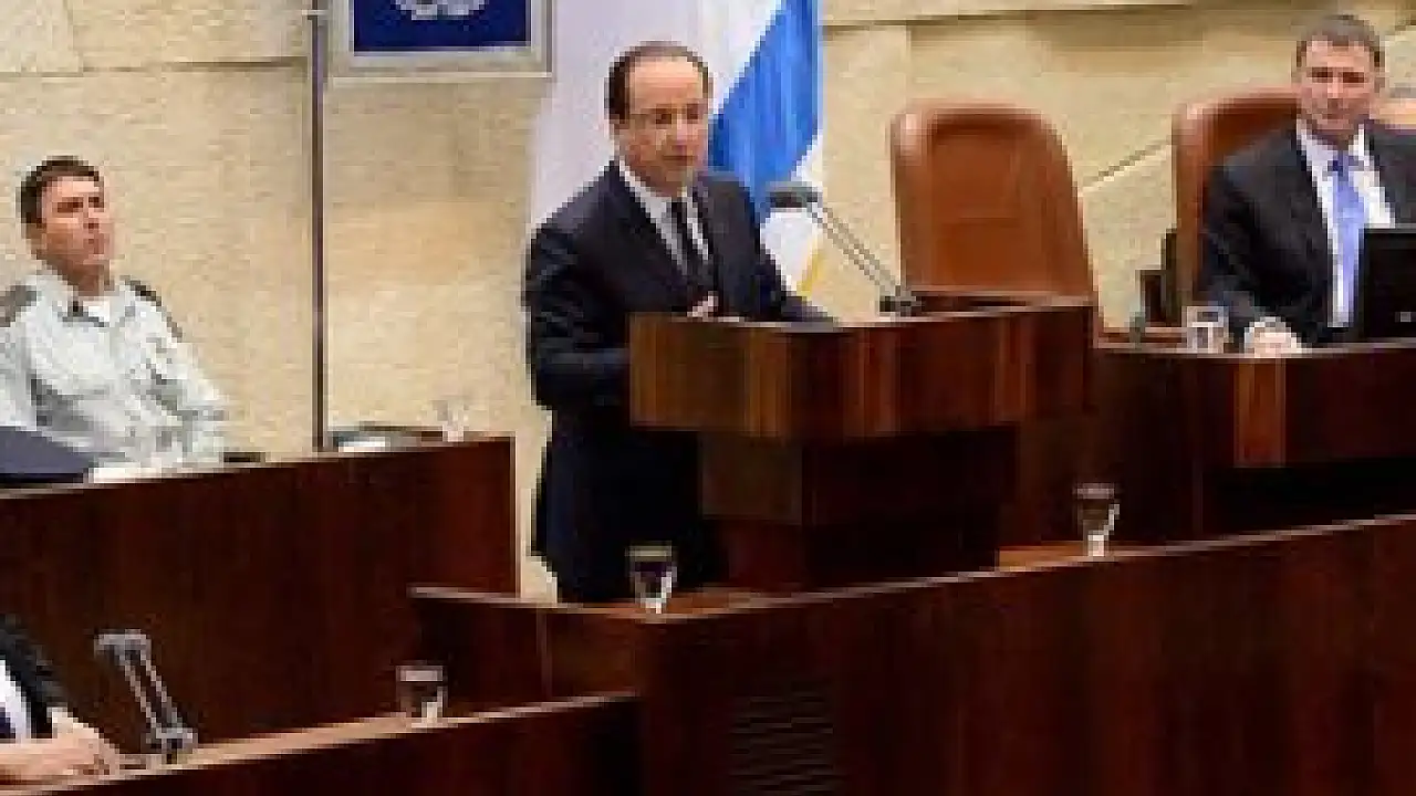 Resmi temaslarda bulunmak üzere geldiği İsrail'de, milletvekillerine hitaben konuşma yapan Hollande, "Filistin Devlet Başkanı Mahmud Abbas'la barış müzakerelerine ilişkin görüşmelerde bulundum. Başkentleri Kudüs olan İsrail ve Filistin devletleri kurulmalı" değerlendirmesinde bulundu.