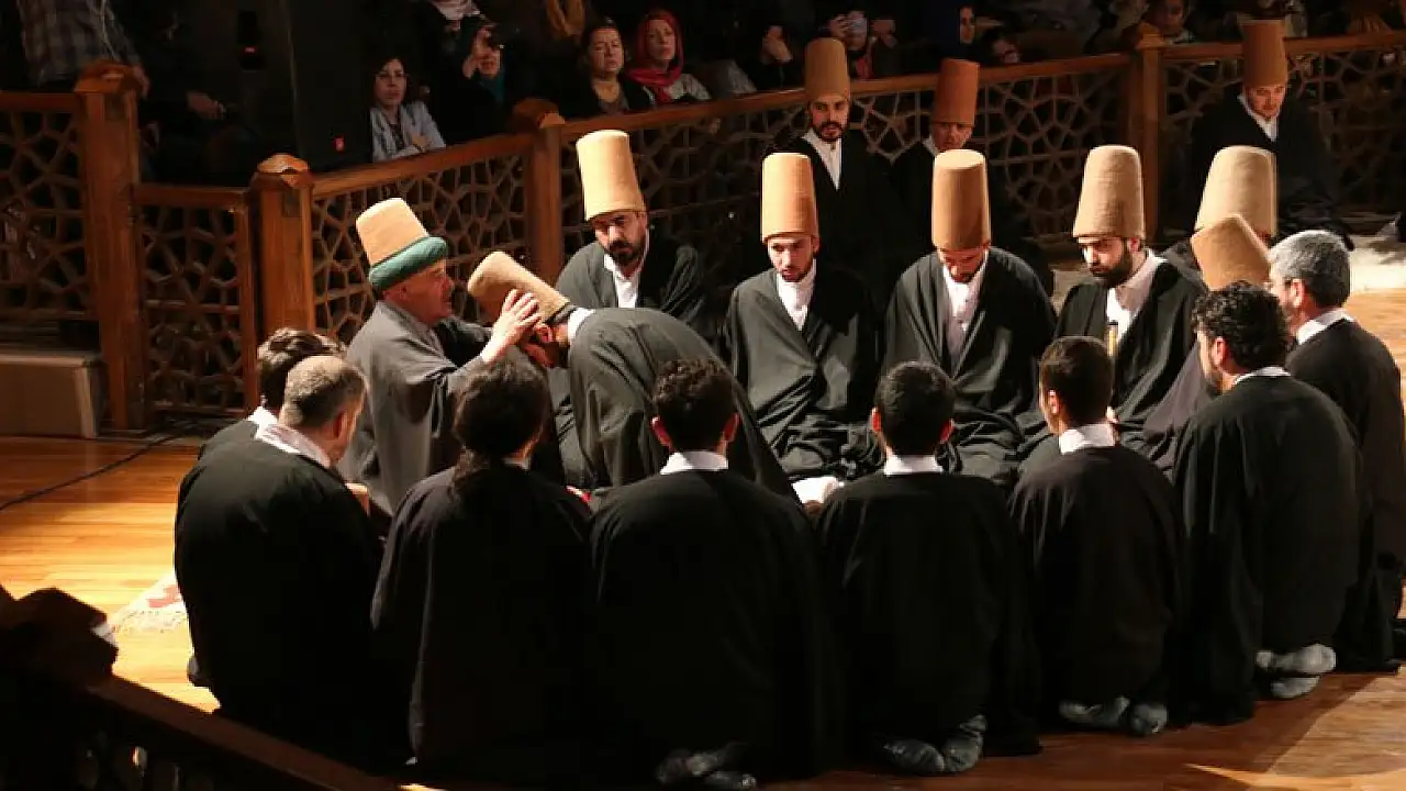 Ömer Tuğrul İnançer'in Mesnevi sohbetinin ardından, Konya Türk Tasavvuf Müziği Topluluğunca sema ayin-i şerifi icra ediliyor.