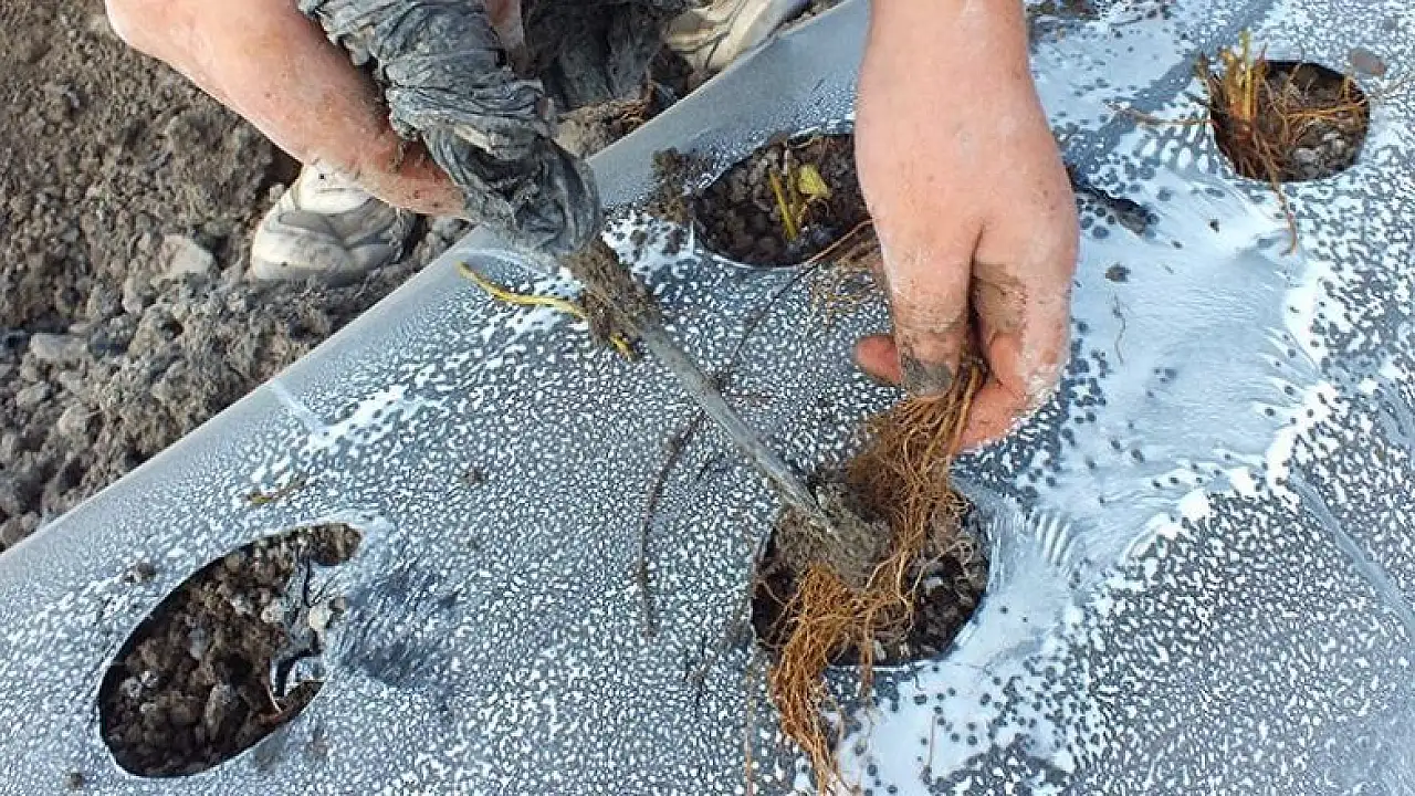 Yeni sezon çilek fideleri toprakla buluşuyor