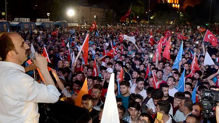 Konya Büyükşehir Belediye Başkanı Uğur İbrahim Altay, Cumhurbaşkanlığı seçimlerin resmi olmayan sonuçlarının açıklanmasının ardından Kılıçarslan Şehir Meydanı'nı dolduran binlerce Konyalıya seslendi.