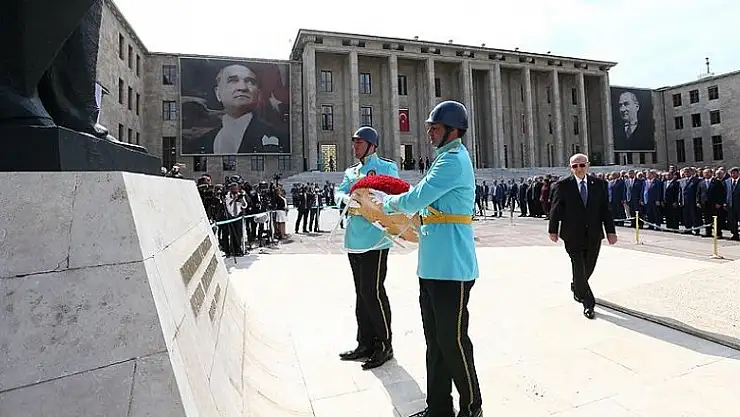 26. Dönem 3. Yasama Yılı dolayısıyla Meclisteki Atatürk Anıtı önünde tören düzenlendi.