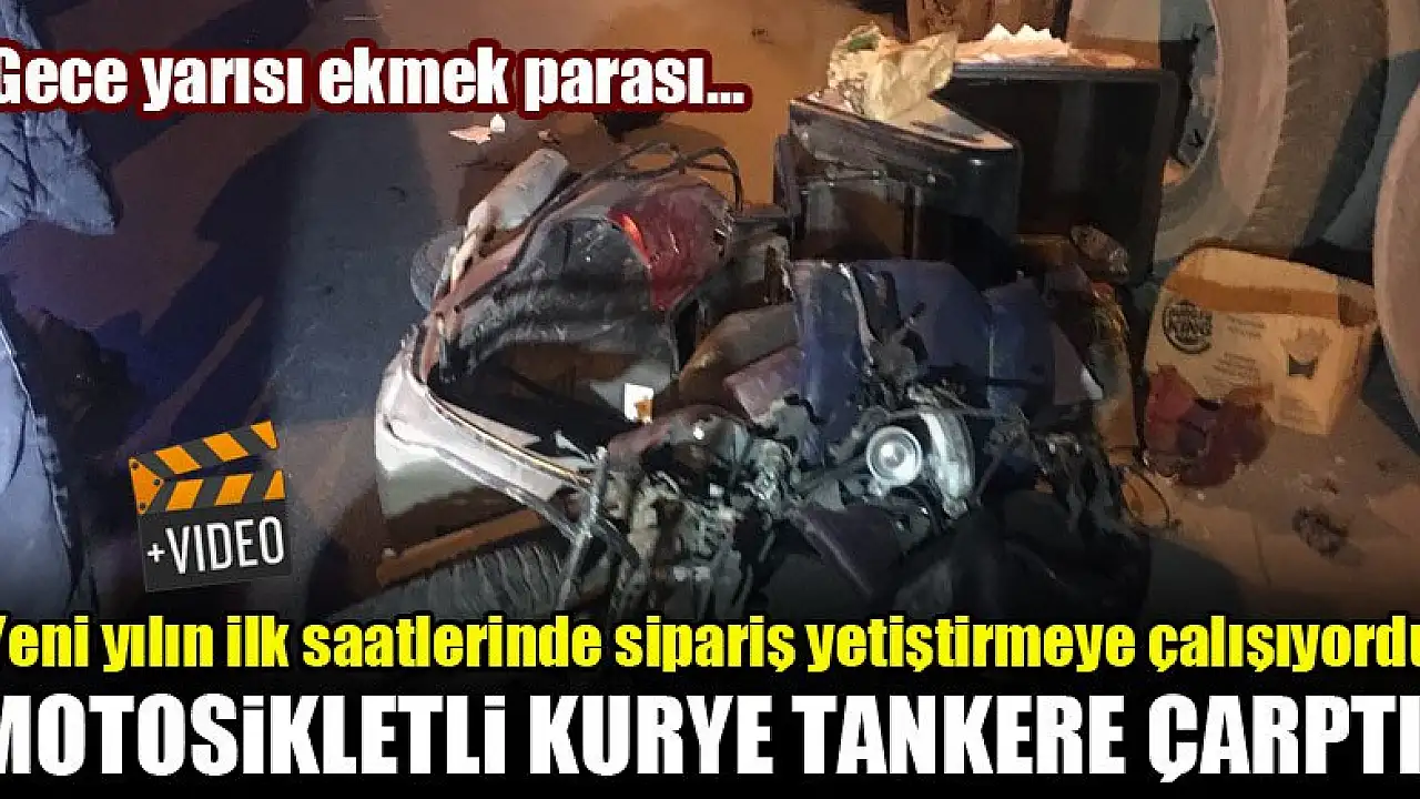 Yeni yılın ilk saatlerinde sipariş yetiştirmeye çalışıyordu...Motosikletli kurye tankere çarpıp ağır yaralandı!
