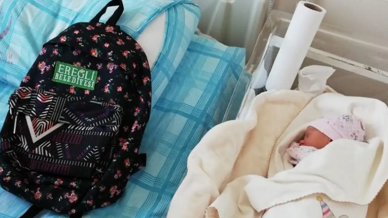 Ereğli Belediyesi yenidoğan bebeklerin ailelerini hastanede ziyaret ederek çok amaçlı hoşgeldin bebek çantası hediye ediyor.