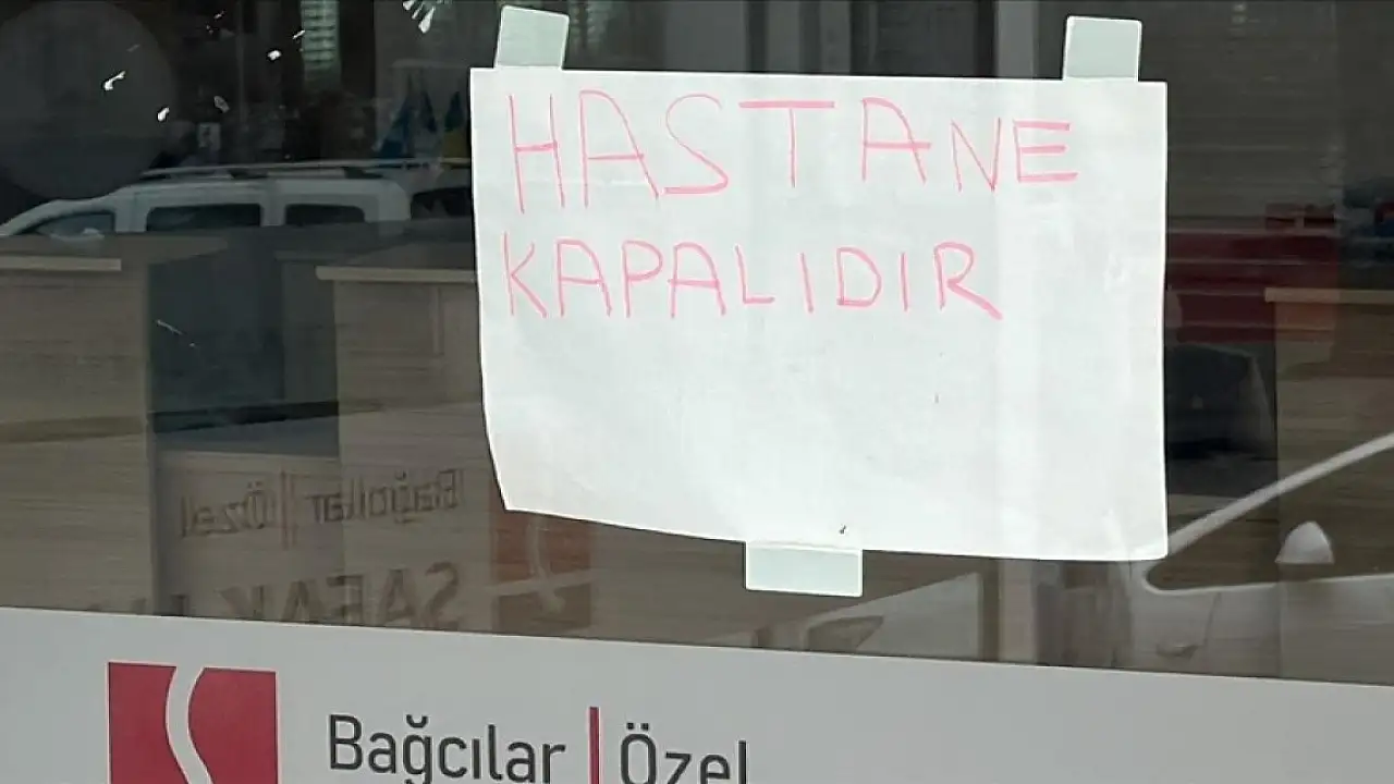 Bağcılar Özel Şafak Hastanesi'nin camında el yazısıyla "Hastane kapalıdır" şeklinde bilginin yer aldığı, hastanenin kapı girişinin ise iki dubayla bağlanıp kapatıldığı gözlendi.