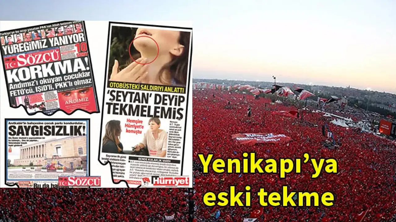 Şortlu kadına tekmeden Anıtkabir'deki çocuk parkına manşetlerden düşmeyen haberler, aynı amaca hizmet ediyor: Darbeye ve teröre karşı Yenikapı'da taçlanan mutabakatı bozmak.