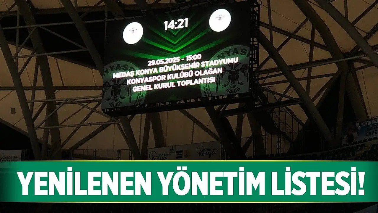 Konyaspor'da genel kurul için artık saatler sayılıyor. 13 Haziran'daki ikinci oturum öncesinde yönetimde olması beklenen isimler çıkartıldı. Ömer Atiker'in başlığında beklenen yeni yönetim listesi şu şekilde; , Mahmut karabulut, Ali Kaya Celalettin Katırcı, Hakan Faydasıçok, Cengiz Yönet, Yusuf Küçükbakırcı, Ahmet Ayan, Mustafa Damkacı, İsa Özgençoğlu, Okay Tinkir ve Yunus Derebağ.
