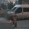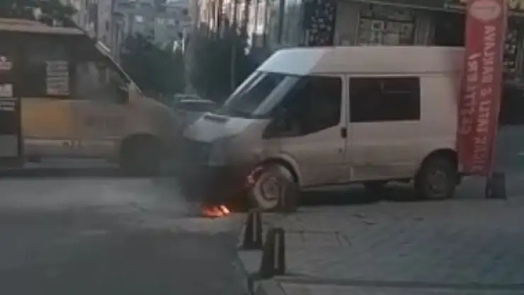 Yer altı kabloları alev aldı, minibüs yanmaktan son anda kurtarıldı