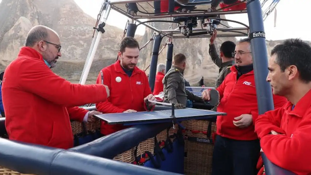 TÜRKİYE'nin önemli turizm merkezlerinden Kapadokya'da, '6 Nisan Dünya Masa Tenisi Günü' nedeniyle sıcak hava balonunda, Kaymaklı Yeraltı Şehri'nde ve Nevşehir Kalesi'nde masa tenisi maçı yapıldı.