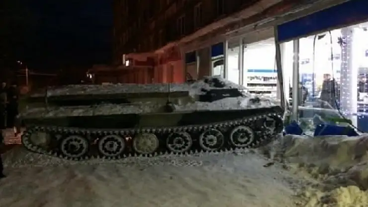 Rusya'nın Murmansk bölgesinde bir adam, tankla soygun gerçekleştirdi. Çalıntı tankın kontrolünü kaybeden ve kimliği verilmeyen kişi, aracın kontrolünü kaybedip bölgedeki bir dükkanın yakınlarındaki arabaya çarptı. Tankı yeniden hareket ettirip bölgeden uzaklaşmaya çalışırken bu kez de yakınlardaki bir dükkanın vitrinini kırarak içine girdi.