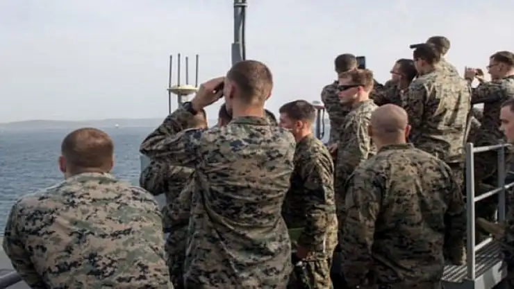 Spring Storm 2018 tatbikatı için Romanya’ya giden ABD donanmasına ait Oak Hill Savaş Gemisi Çanakkale Boğazı’ndan geçerken gemide görevli personelin Tarihi GeliboluYarımadası’nı dürbünle seyrettiği fotoğrafları sosyal medyada yayınladı.