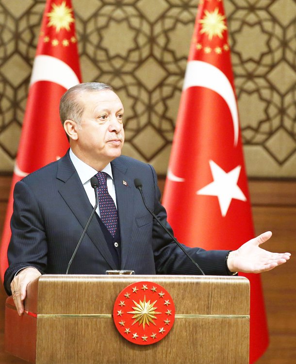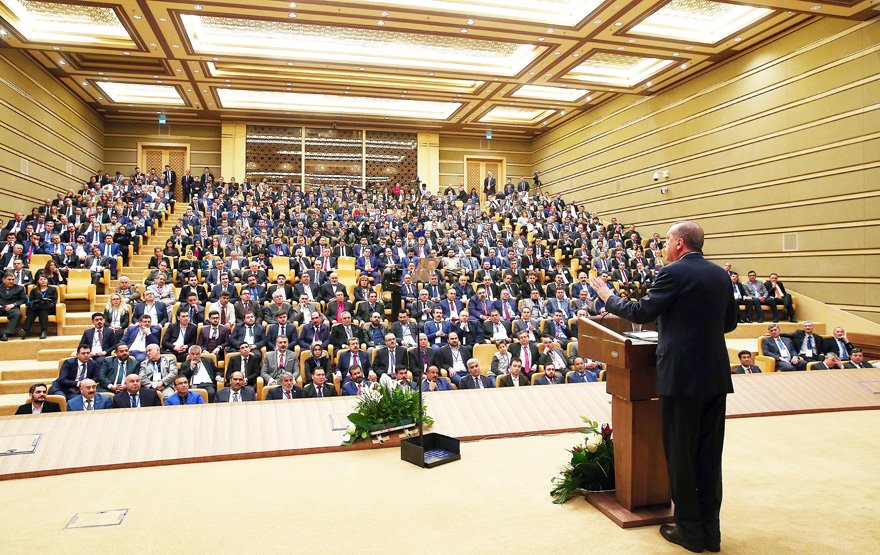 Dünyada medyanın yaygın olarak demokrasinin nüvesini oluşturan yürütme, yasama, yargının ardından dördüncü güç olarak zikredildiğini belirten Erdoğan “Ülkemizde geçmişte kendini bu sıralamanın ilk sırasına çıkartan, zımnen milleti ve milli iradeyi temsil eden kurumları tanımadığını söyleyen medya patronları gördük. Geçmişte bunlar oldu. Milletimizin değerlerine karşı savaş açan, kültürümüzü, tarihimizi, medeniyetimizi yıkmayı kendine misyon edinen basın organları, basın mensupları gördük. Aynı tıynette oldukları siyasetçilerle birlikte, Türkiye’nin varlığının ve birliğinin teminatı olan tüm sembollere saldıran medya gruplarının faaliyetlerine ne yazık ki şahit olduk. Elbette farklı politikalar izleyen yayın kuruluşları vardır ama maalesef medyadaki hakim yapı bu kesimlerin kontrolündeydi. Hatırlayın ‘tüzüklerle çarpışarak büyüdük’ diyen şairden ilham alarak bende diyorum ki, biz de manşetlerle çarpışarak bugünlere geldik. Kendi halkına ‘cahil, koyun sürüsü, bidon kafa, göbeğini kaşıyan adam’ diyenlere eyvallah etmediğimiz için her türlü saldırıya, hakarete maruz kaldık. Onun için ‘muhtar bile olamaz’ diye amiral gemisi diye geçinenler sürmanşet attılar. Bunlar muhtarları küçümsediler ama biz şu salonda muhtarlarımızla bir araya geliyoruz.