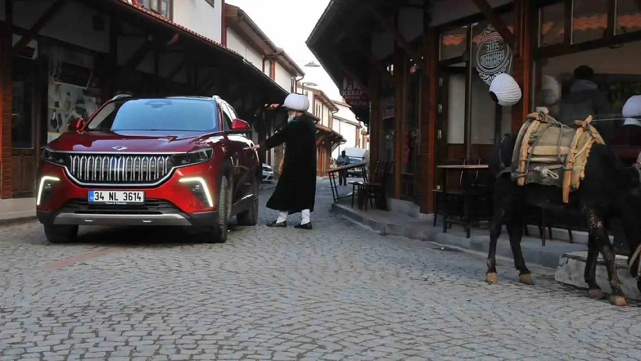 Türkiye'nin yerli otomobili TOGG, program çekimi için getirildiği Konya'nın Akşehir ilçesinde büyük ilgi gördü.