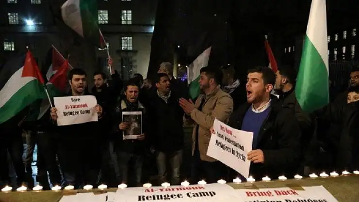 İngiltere'nin başkenti Londra'da Başbakanlık binası önünde toplanan ve ellerinde mülteci kampındaki dramı yansıtan fotoğraflar tutan protestocular, "Yermuk Mülteci Kampını koru", "Yermuk ağlama, asla ölmenize izin vermeyeceğiz", "Yermuk özgür olacak", "Hepimiz Filistinliyiz" şeklinde slogan attılar.