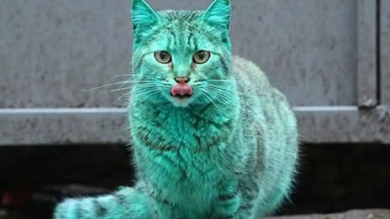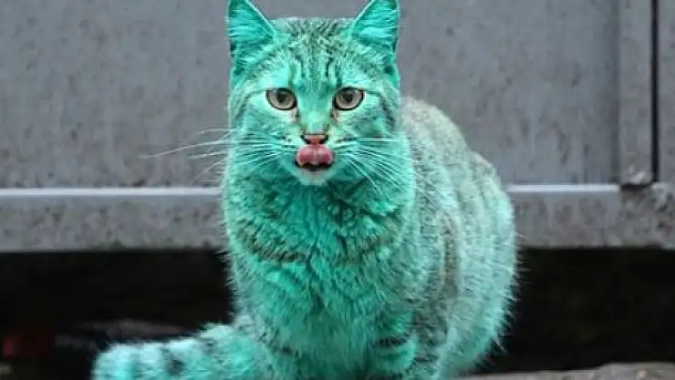 Bulgaristan'ın Varna kentinde görülen yeşil kedinin sırrı çözüldü.