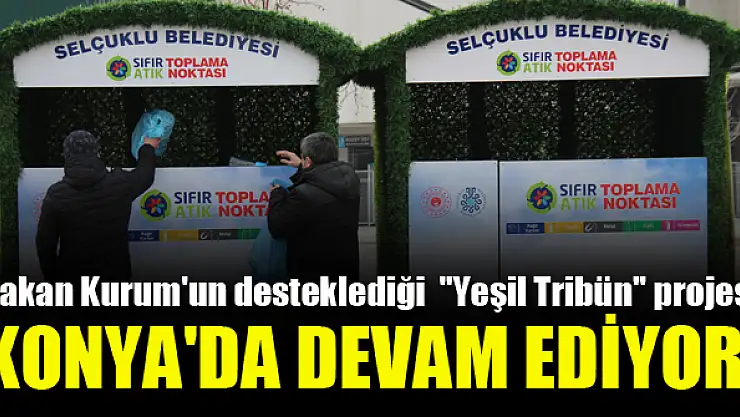 Çevre, Şehircilik ve İklim Değişikliği Bakanı Murat Kurum'un talimatıyla kasımda başlatılan ve tüm ülkede yaygınlaştırılması hedeflenen "Yeşil Tribün" projesi Konya'da devam ediyor. Bakanlığın himayesinde, Konyaspor ile Çevre, Şehircilik ve İklim Değişikliği İl Müdürlüğü ortaklığında sürdürülen projede, maç öncesi topladığı 5 cam ya da plastik atık şişe getiren Konyaspor taraftarına ücretsiz maç bileti veriliyor. Projeyle atıkların geri dönüşüme kazandırılması, sporseverlerde ve ailelerinde çevre bilincinin kazandırılması hedefleniyor. Çevre, Şehircilik ve İklim Değişikliği Konya İl Müdürü Hülya Şevik, AA muhabirine, Bakan Kurum'un çevre dostu projelere sahip çıktığını, özellikle "Sıfır atık" projesiyle genç-yaşlı, kadın-erkek binlerce vatandaşa doğayı koruma bilinci kazandırıldığını söyledi.