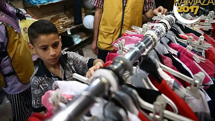 Temsilcilik binasına getirilen binden fazla Türk ve Suriyeli ihtiyaç sahibi yetim, Ramazan Bayramı'nda giyecekleri kıyafetleri zevkleri ve bedenlerine göre seçerek aldı.