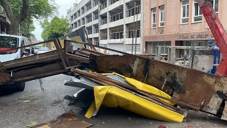 FATİH'te yıkımı devam eden, İstanbul Büyükşehir Belediyesi'nin eski ek hizmet binasının çatısındaki büyük demir parça, vinçle sökülürken caddedeki araçların üstüne düştü. Bir kişi hafif şekilde yaralanırken, cadde trafiğe kapandı.