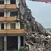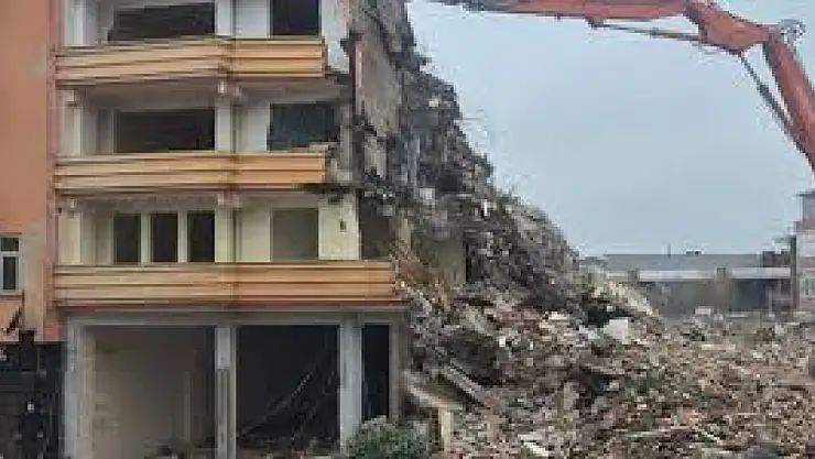 Yıkım sırasında bina iş makinesinin üzerine devrildi