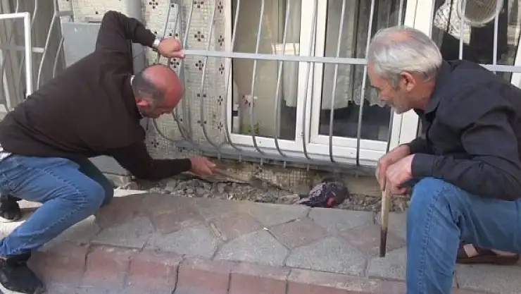 Olay yerine gelen itfaiye ekipleri, sokaktaki binanın zemin katına girme ihtimaline karşı, beton ve tuğlaları kırarak yılanın yerini tespit etmeye çalıştı. Mahalle sakinleri, çocuklar ve zemin katta oturan Sevgi Şenocak, itfaiye ekiplerinin çalışmalarını meraklı gözlerle izledi. Yaklaşık 1 saat süren çalışmalar sonucunda yaklaşık 70 santimetre uzunluğundaki yılanın yeri tespit edildi ve bulunduğu yerden çıkartıldı. Vatandaşlar itfaiye ekiplerini alkışlayarak teşekkür etti. İtfaiye ekiplerince koruma altına alınan yılan doğaya salınmak üzere götürüldü.