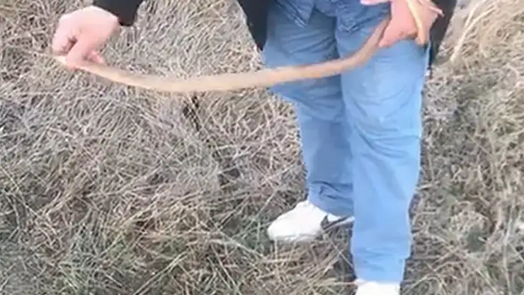 Edinilen bilgiye göre, ilçede hububat alım satımı yapan bir iş yerinde kanalizasyon çalışması için iş makinesinin kazı yaptığı sırada yılan çıktı. O sırada iş yerinde bulunan elektrik tesisat ustası Serdal Alıcı, kış mevsimi olması dolayısıyla uyuşuk vaziyette olan yılanı bir torba içerisine koyarak Kulu Doğal Hayatı Koruma Derneği Başkanı Murat Uludağ’a götürdü. Dernek Başkanı Uludağ, Serdal Alıcı ile birlikte araziye giderek yılanı eline aldı ve kafasından tuttuğu yılanı bir fare deliğine bıraktı. Yılan da deliğe girerek gözden kayboldu. Bu anlar ise cep telefonu kamerasıyla kaydedildi.