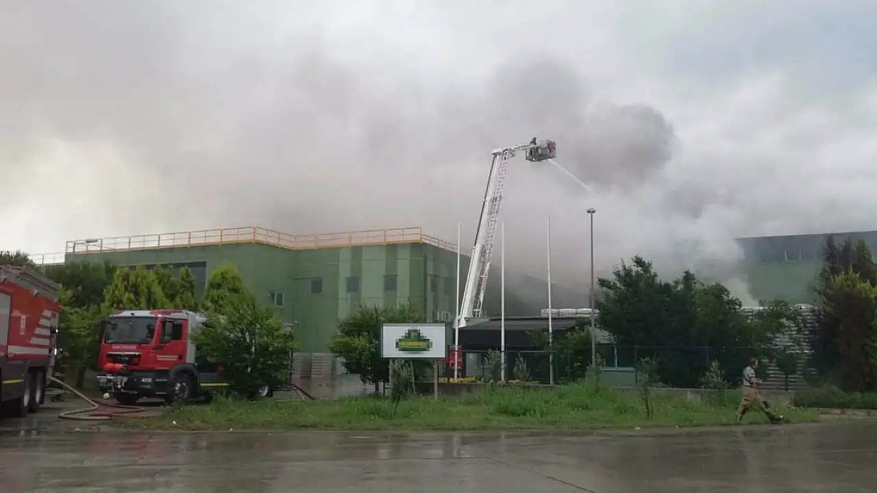 İZMİR'de, depolama tankları ve trafonun olduğu bölüme yıldırım düşen turşu fabrikasında yangın çıktı. Alevler yarım saatte söndürülürken, fabrikada zarar oluştu.