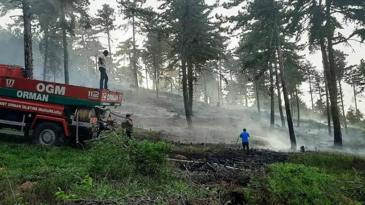 Yıldırım düşmesi sonucu çıkan orman yangını büyümeden söndürüldü