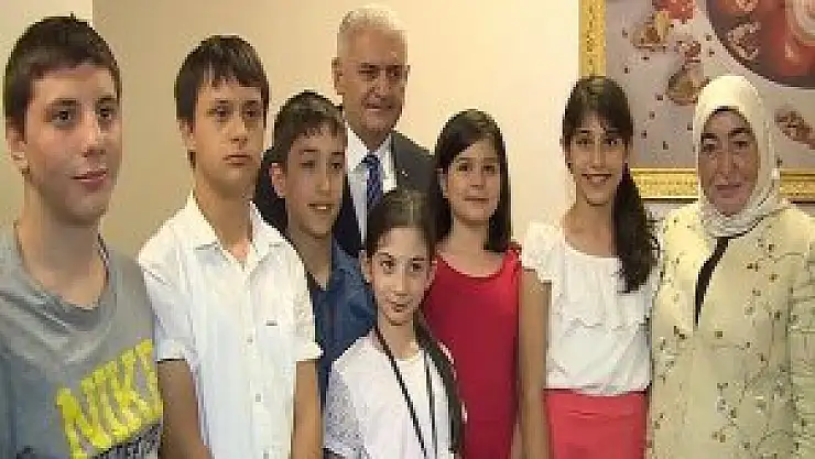 Başbakan Binali Yıldırım, "Bin Minik El, Bir Bayrak" projesi kapsamında Türkiye'nin en büyük Türk bayrağını dokuyan çocuklarla bir araya geldi.
