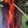 Tokat'ta yıldırım düşmesi sonucu alev alan ağaçta çıkan yangına bir vatandaşın kürekle müdahale ederek söndürme çabası cep telefonu kameralarına yansıdı.