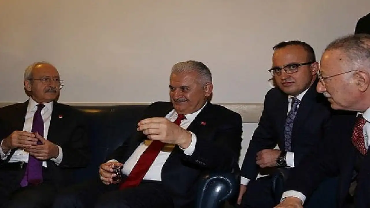 Kuliste partisinin Grup Başkanvekilleri Gürsel Tekin ve Özgür Özel ile bulunan Kılıçdaroğlu'nun oturduğu bölüme gelen Yıldırım, burada oturarak bir süre sohbet etti.