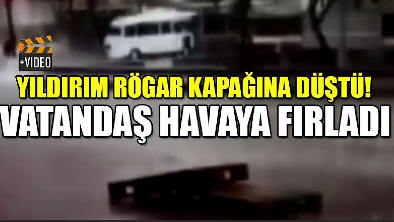 Yıldırım rögar kapağına düştü! Vatandaş havaya fırladı