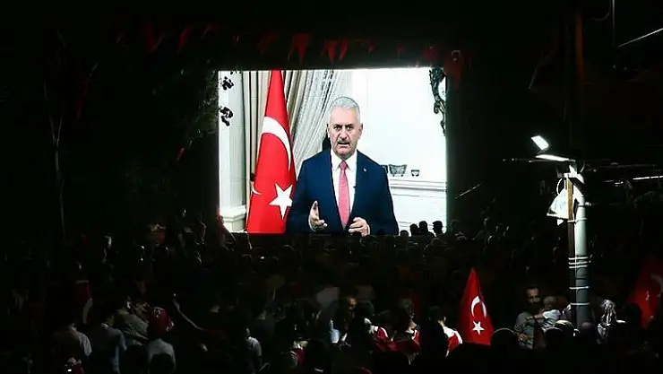 Çankaya Köşkü'nden meydanlara telekonferansla bağlanan Yıldırım, "demokrasi nöbeti" tutan vatandaşlara hitap etti.