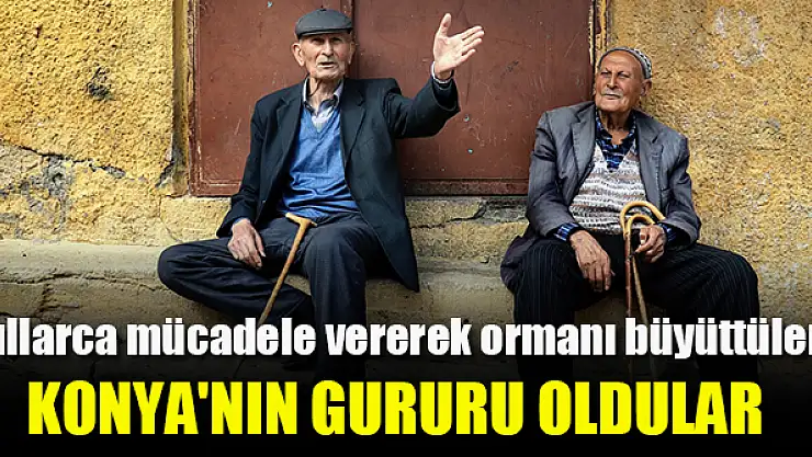 Konya'nın Akşehir ilçesinde bozkırı ormana dönüştürmek için 64 yıl önce başlatılan seferberliğe katılan Şükrü ve Mevlüt Karakoyun kardeşler, gurur duyduğu eserleri sayesinde 7 haneli mahallede doğayla iç içe yaşamını sürdürüyor.