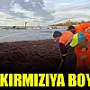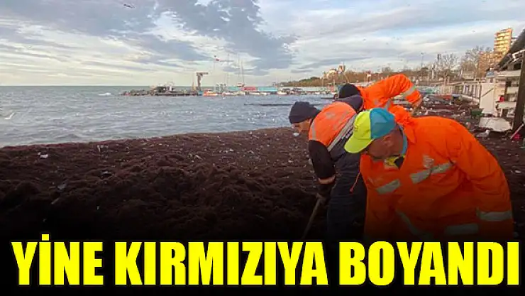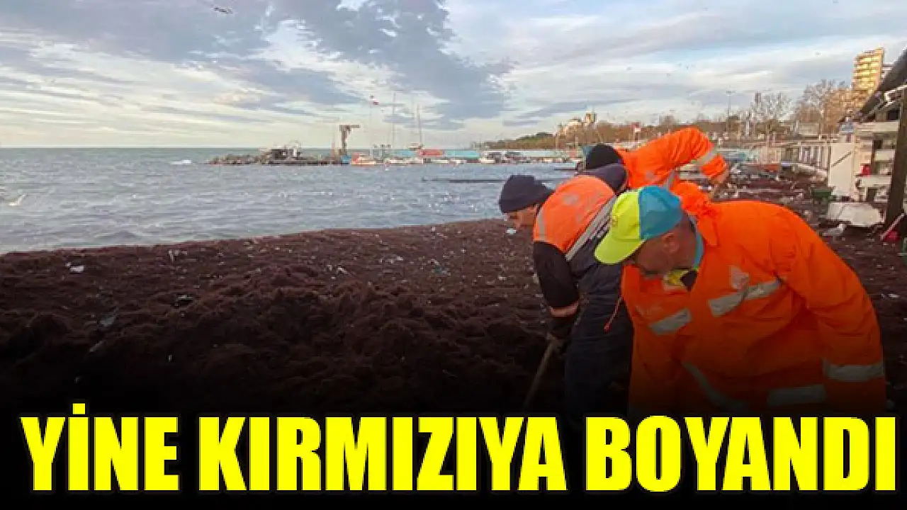 İstanbul`da dün akşam saatlerinden itibaren etkili olan sağanak ve şiddetli rüzgar nedeniyle Kadıköy Caddebostan Sahili`ni yine kırmızı yosunlar kapladı.