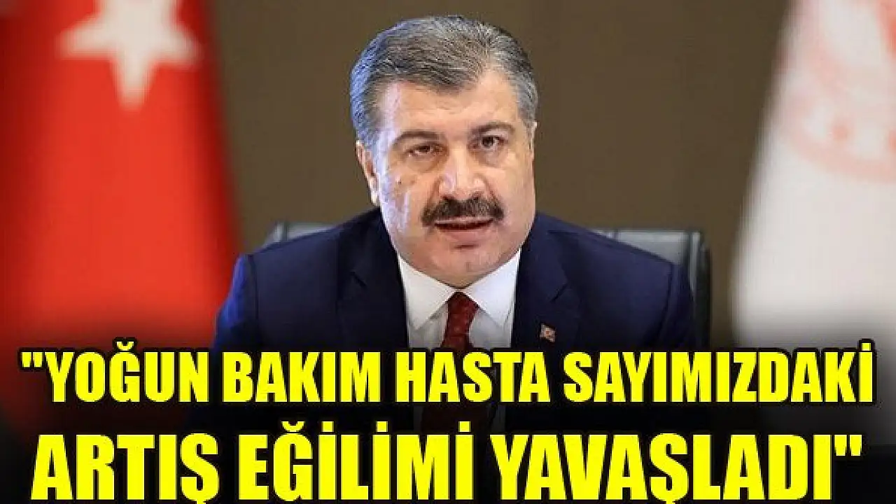 Bakan Koca, Twitter hesabından son verilere ilişkin yaptığı paylaşımda, "Yoğun bakım hasta sayımızdaki artış eğilimi yavaşladı. Entübe hasta sayımız 7 azaldı. İyileşen hasta sayımız, yeni tanı konanların iki katından fazla. Maske ve mesafe kuralına uyumdaki artışa bağlı olarak, vaka sayılarında küçük azalmalar devam ediyor." ifadesini kullandı.