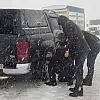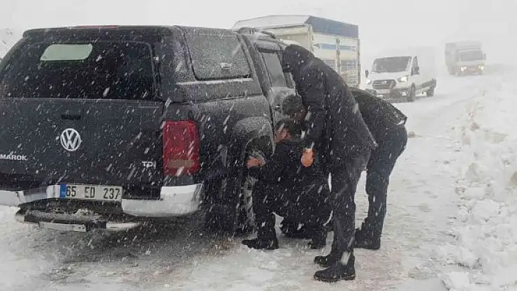 Ekipler yoğun kar yağışı nedeniyle uzun yola çıkacak sürücüleri hız ve mesafe konusunda uyardı.