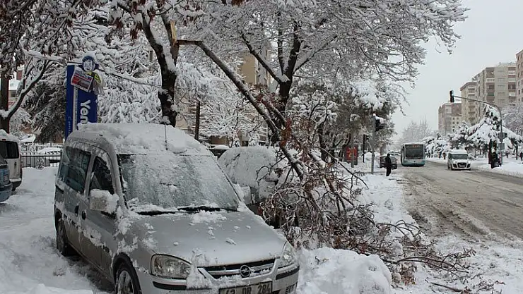 Konya'da dün akşam saatlerinde başlayan ve gün içerisinde de etkisini giderek arttıran kar yağışı ağacın devrilmesine yol açtı.