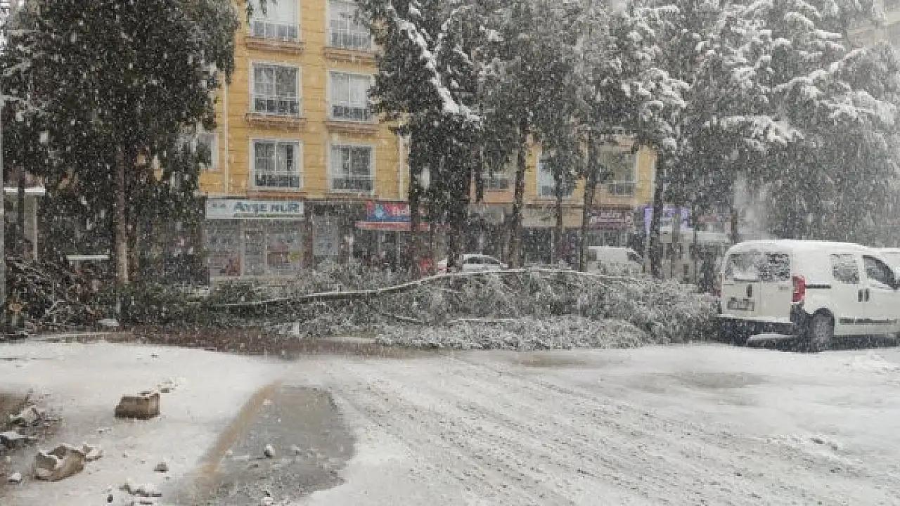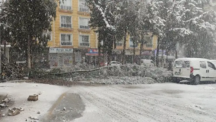 Yoğun kar yağışı nedeniyle ağaçlar devrildi