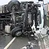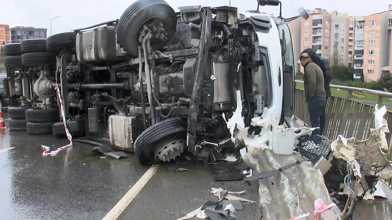 İstanbul Arnavutköy'de yol bakım aracının işaret tabelasına çarpan kamyon devrildi. Kamyon içinde sıkışan şoför itfaiye ekiplerince çıkarıldıktan sonra kaldırıldığı hastanede hayatını kaybetti.