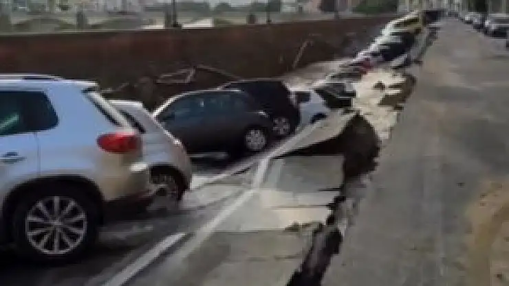 İtalya'nın Floransa kentinde yolun çökmesi sonucu park halindeki en az 20 araç oluşan çukura düştü.