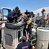 Yol çöktü, devrilen beton mikserinin şoförü yaralandı