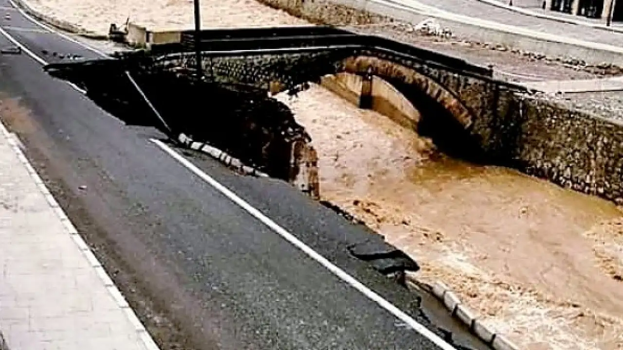 Yol çöktü, kemer köprü hasar gördü