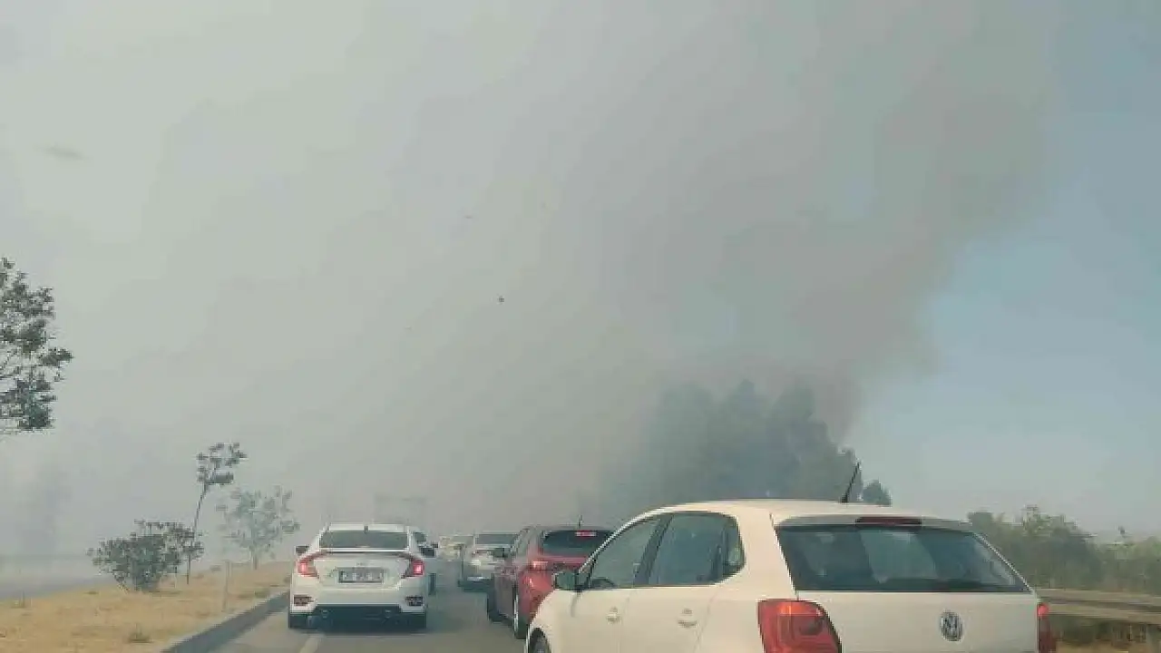 Söke-Bodrum yolu üzerinde çıkan yangın dolayısıyla ortalığı kaplayan yoğun duman görüş mesafesini yok ederken, sürücüler zor anlar yaşadı.