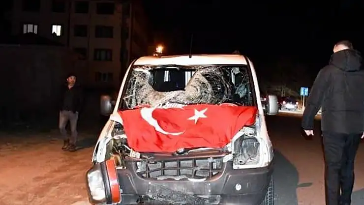 Jandarma ekipleri, askere gitme hazırlığı yapan ve kullandığı hafif ticari aracın önüne Türk bayrağı asan Tayfun S.'yi gözaltına aldı. Kazayla ilgili soruşturma sürdürülüyor.